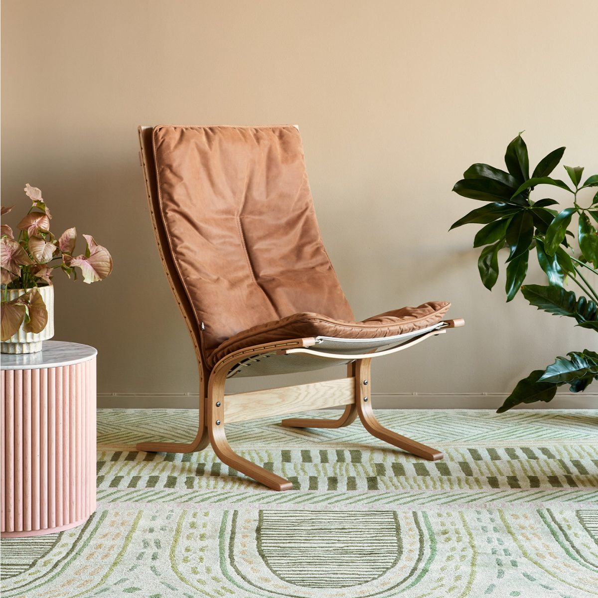 Siesta ble ansett som trendsettende stoler og selger godt til det internasjonale markedet. Stolene har fått en rekke internasjonale priser og finnes i mange hjem verden over. Stolen kommer i flere treverk/beissorter og kan leveres med både fotskammel, nakkepute og armlene. | |