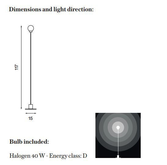 Bord- og gulvlampeserie Skjermmateriale: Munnblåst glass Skjermfarge: Hvitt opalt glass Lampefot materiale: Stål og aluminium eller messing Kroppsfarge: stål, hvit, svart eller børstet messing Pære: G9 Halogen. Maks. 40 W |