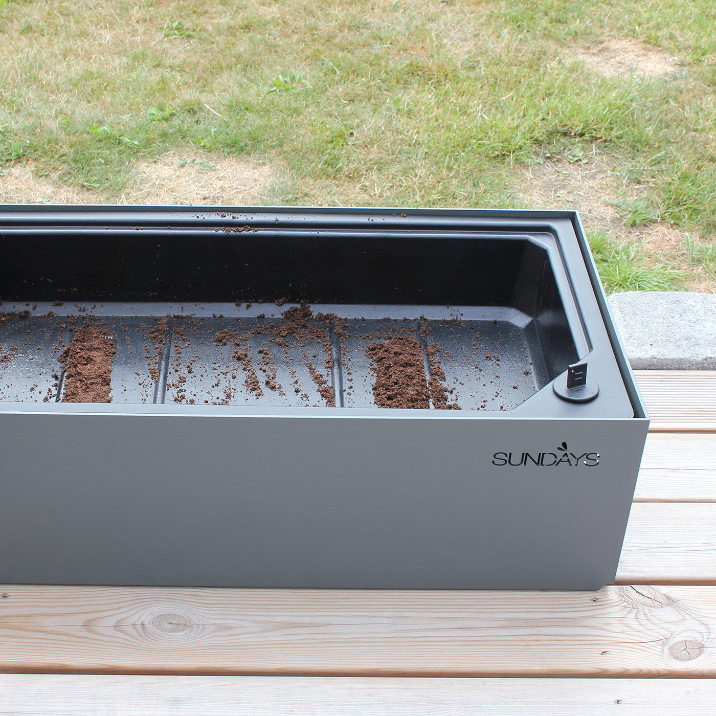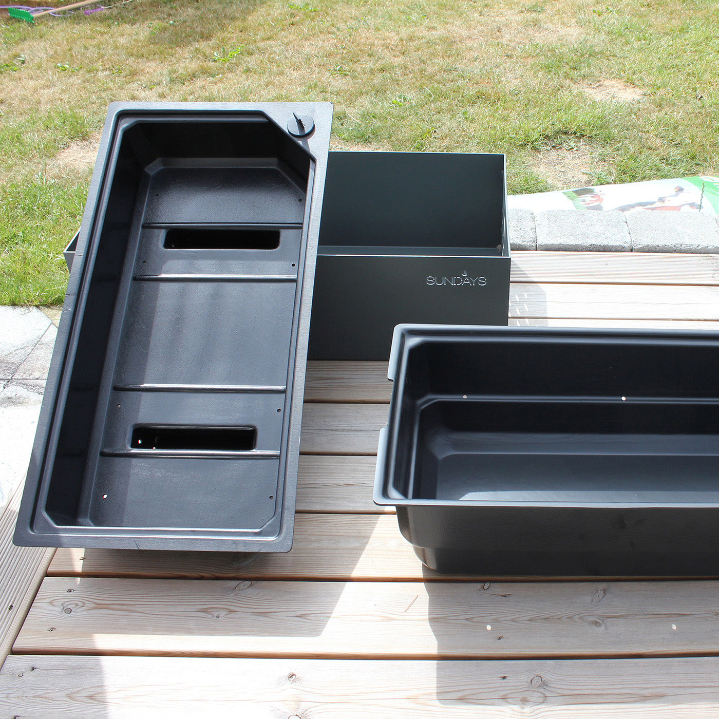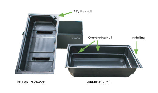 3. Fyll opp vannmagasinet gjennom påfyllingshullet. Husk å sette på lokket og nyt din Sundays blomsterkasse |