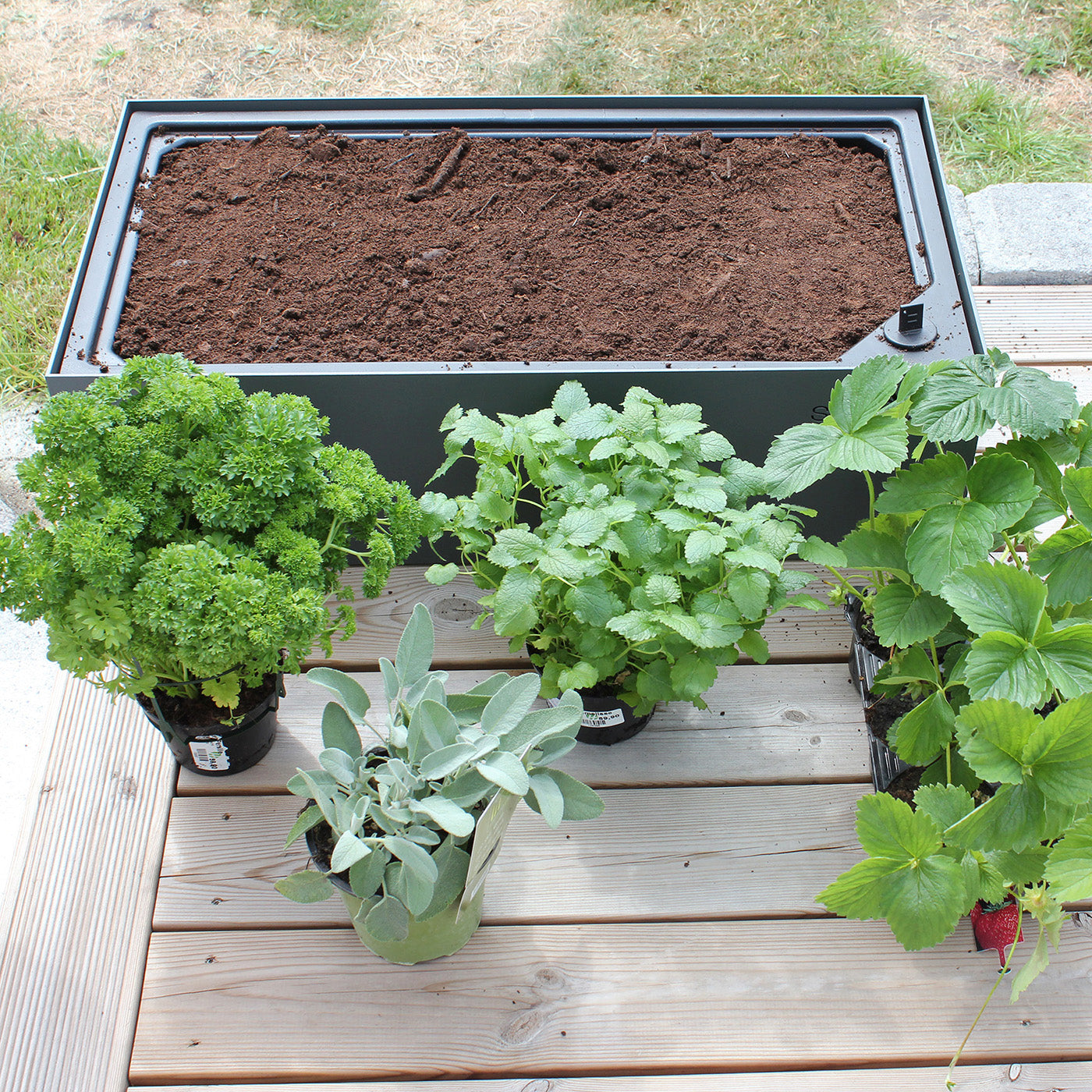 1. Fyll jordveker med jord og deretter hele beplantningskassen. | |||
