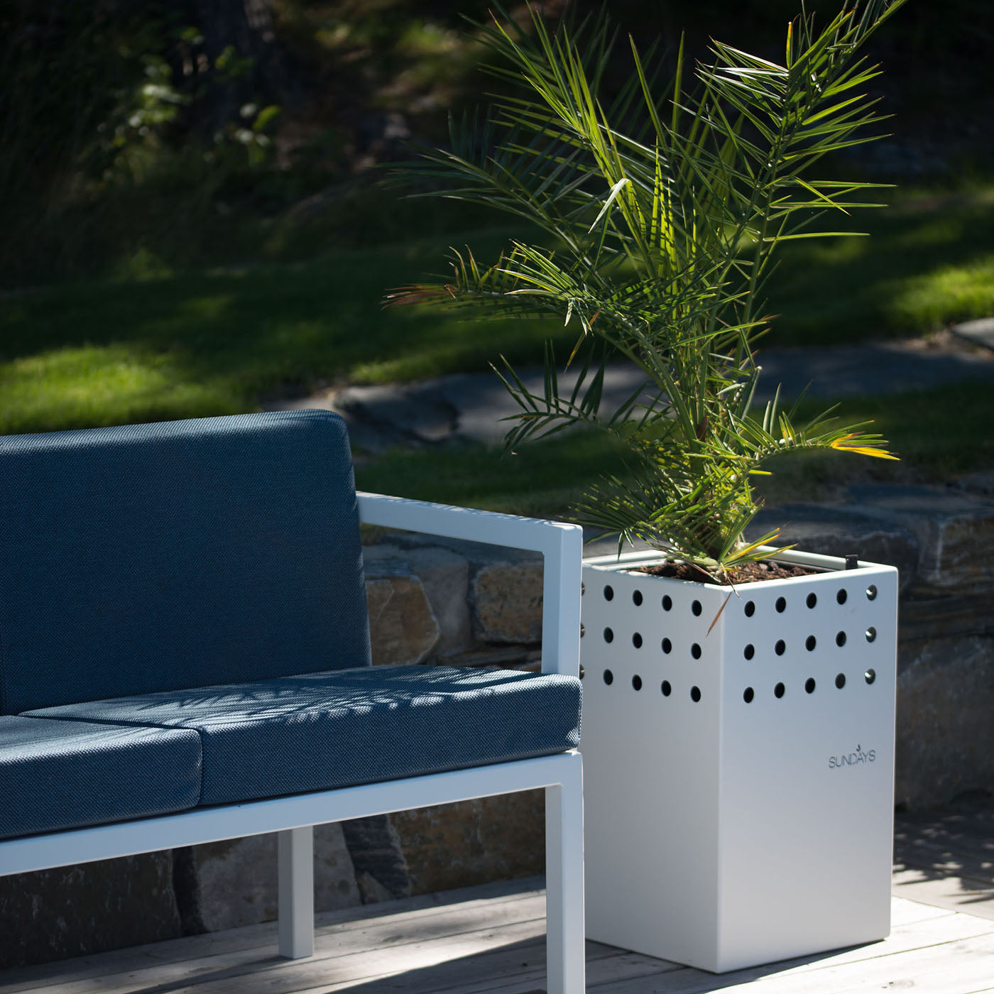 Enkle linjer designet i evigvarende materialer. Hver eneste strek er lagt med tanke på hvor vannet skal renne av. Med sitt minimalisiste utrykk, gjør designet seg godt i vågale farger og tekstilvalg. Møblene er laget i pulverlakkert aluminium og ruster ikke. Putene tåler selvfølgelig både regne og snø. Sundays design er hardhausen av designmøbler. Med våre møbler kan du starte sommersesongen allerede i påsken, og la terrassen på hytta eller hjemme gi deg et hint av sommer midt i skisesongen. |