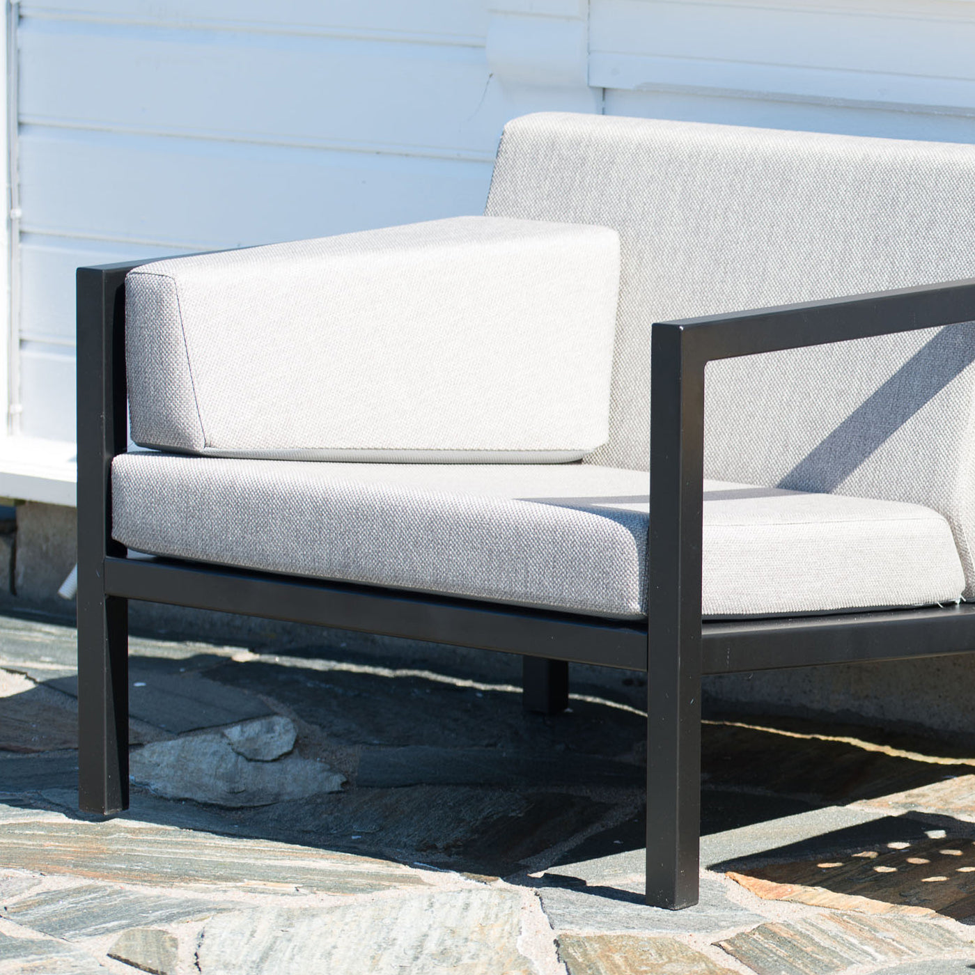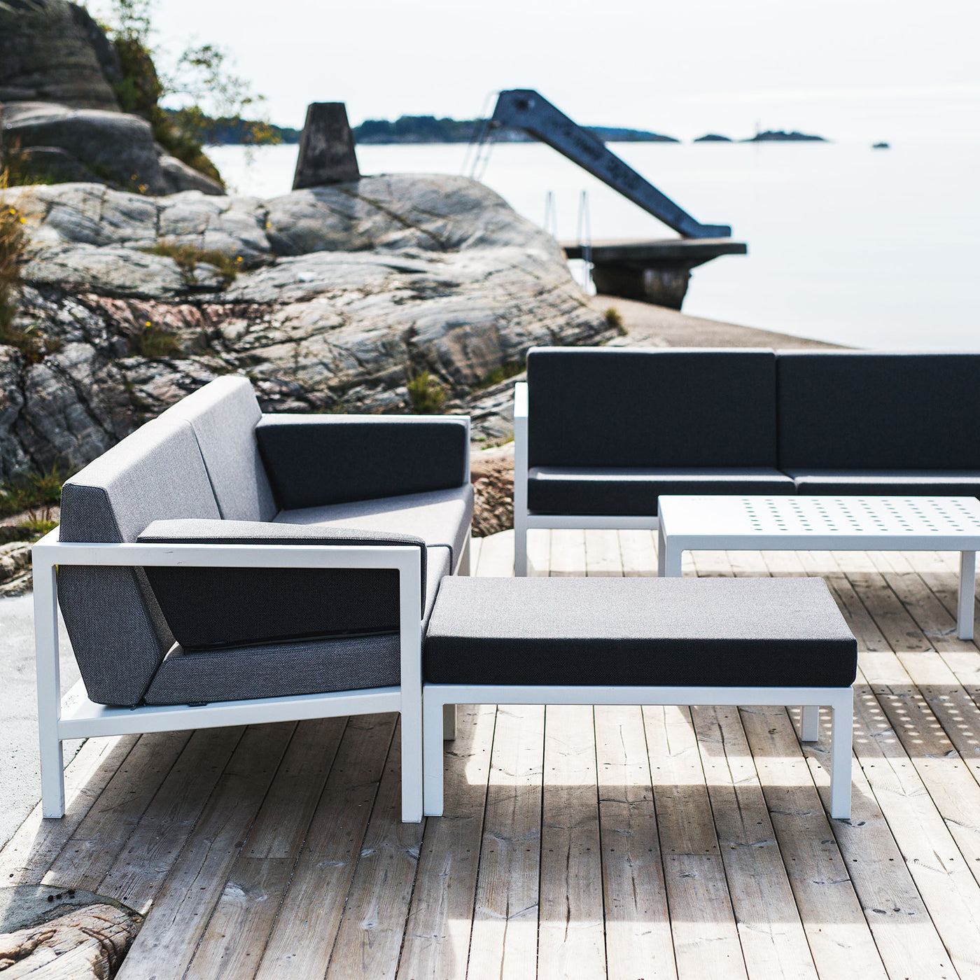 Enkle linjer designet i evigvarende materialer. Hver eneste strek er lagt med tanke på hvor vannet skal renne av. Med sitt minimalisiste utrykk, gjør designet seg godt i vågale farger og tekstilvalg. Møblene er laget i pulverlakkert aluminium og ruster ikke. Putene tåler selvfølgelig både regne og snø. Sundays design er hardhausen av designmøbler. Med Sundays kan du starte sommersesongen allerede i påsken, og la terrassen på hytta eller hjemme gi deg et hint av sommer midt i skisesongen. |