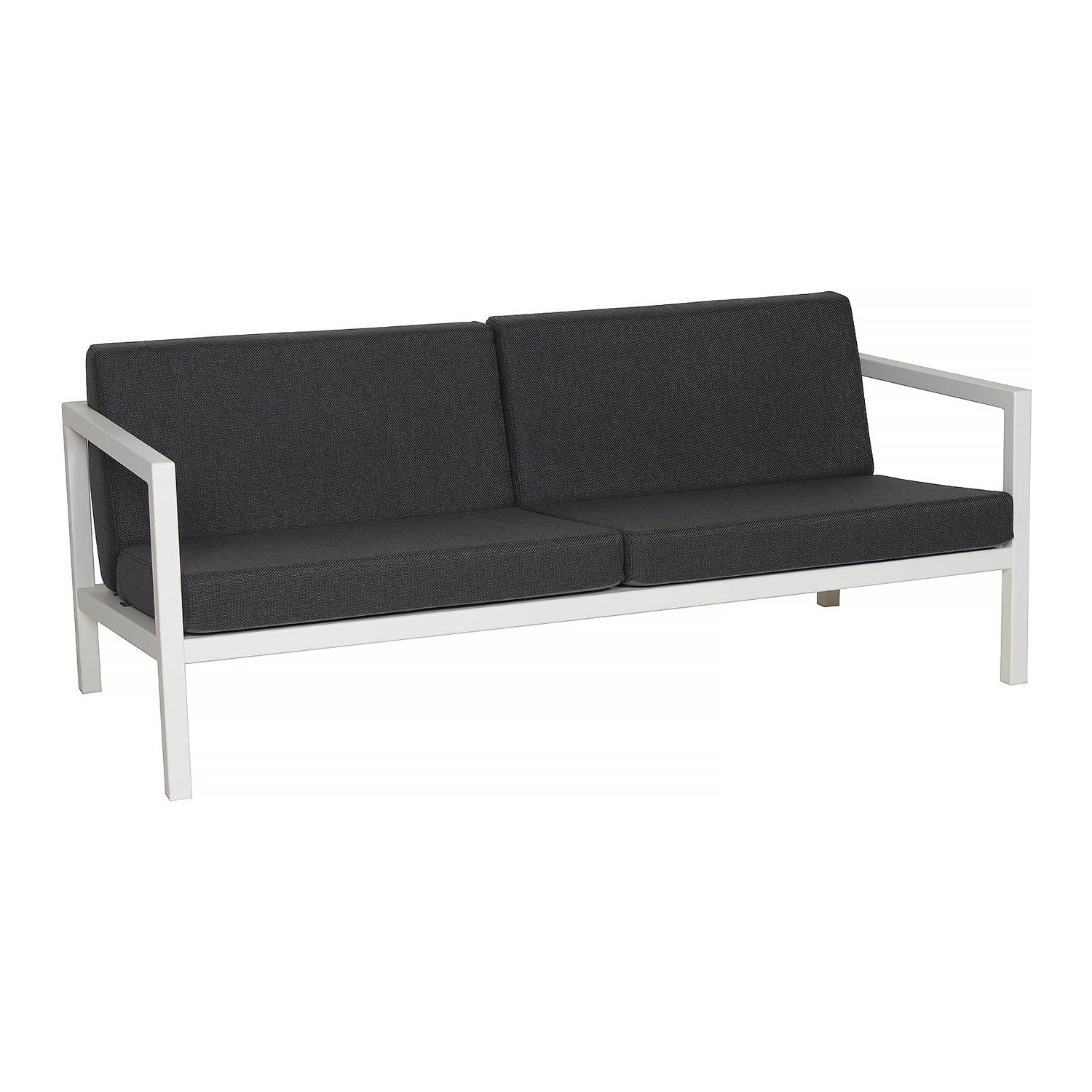Enkle linjer designet i evigvarende materialer. Hver eneste strek er lagt med tanke på hvor vannet skal renne av. Med sitt minimalisiste utrykk, gjør designet seg godt i vågale farger og tekstilvalg. Møblene er laget i pulverlakkert aluminium og ruster ikke. Putene tåler selvfølgelig både regne og snø.