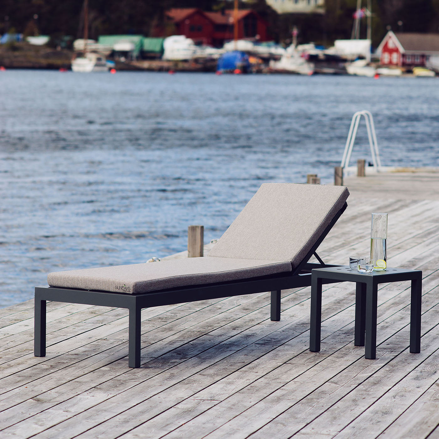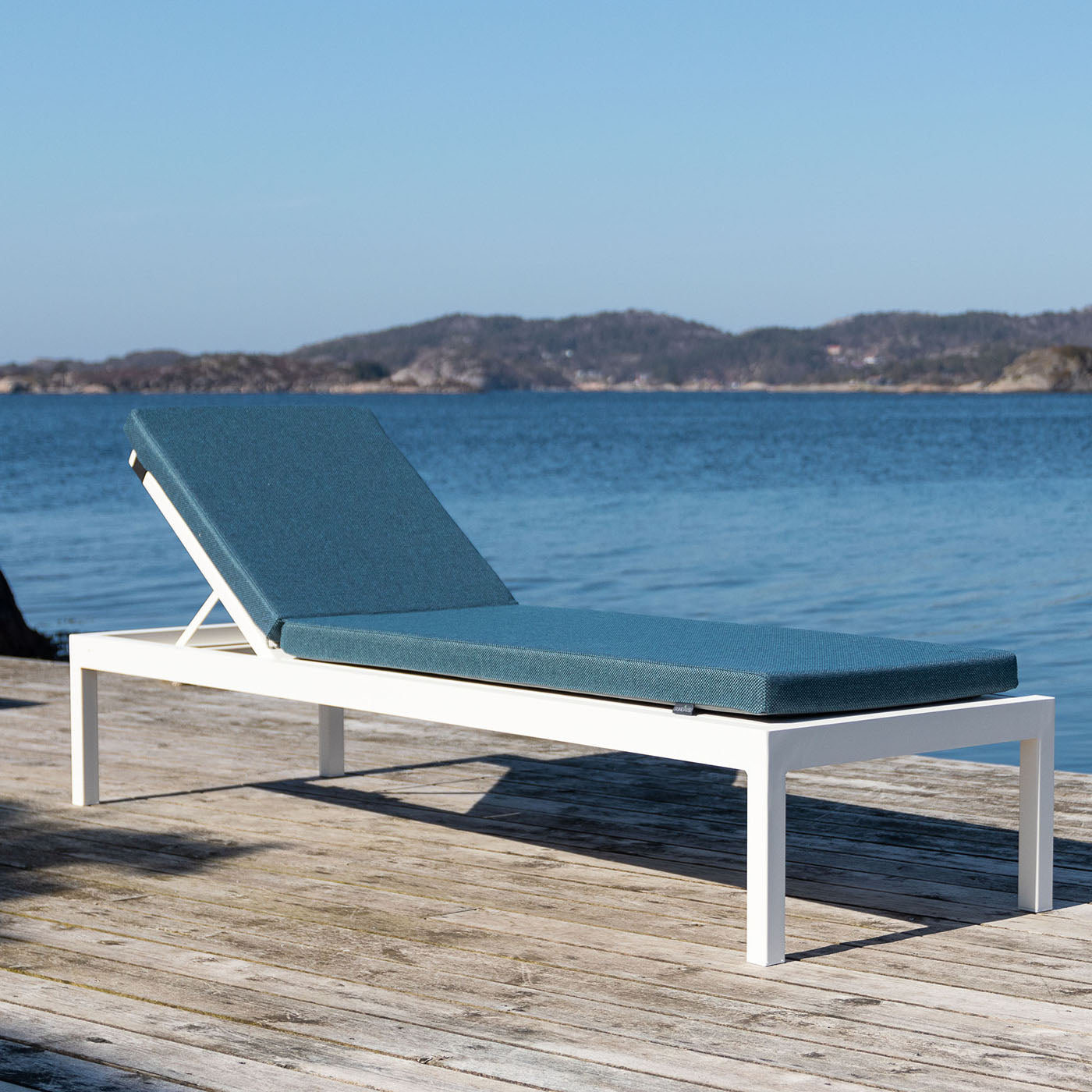 | Solsengen i FRAME-serien er perfekt for deg som elsker sol like høyt som design. Solseng med justerbar rygg og pute som kan ligge ute hele sesongen. Den passer passer perfekt inn ved bassengkanten, og tåler godt en vannsprut. Også klorvann. Puten vil tørke opp i løpet av få minutter. Og du, her snakker vi forresten en skikkelig pute, ikke en sånn klam plastpute som du er vant med fra syden. Håndkleet kan du legge igjen inne, ikke på solsengen. Blir putene tilgriset, så spyler du med hageslangen. |