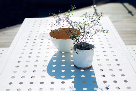 Enkle linjer designet i evigvarende materialer. Hver eneste strek er lagt med tanke på hvor vannet skal renne av. Med sitt minimalisiste utrykk, gjør designet seg godt i vågale farger og tekstilvalg. Møblene er laget i pulverlakkert aluminium og ruster ikke. Putene tåler selvfølgelig både regne og snø. Sundays design er hardhausen av designmøbler. Med Sundays kan du starte sommersesongen allerede i påsken, og la terrassen på hytta eller hjemme gi deg et hint av sommer midt i skisesongen. |