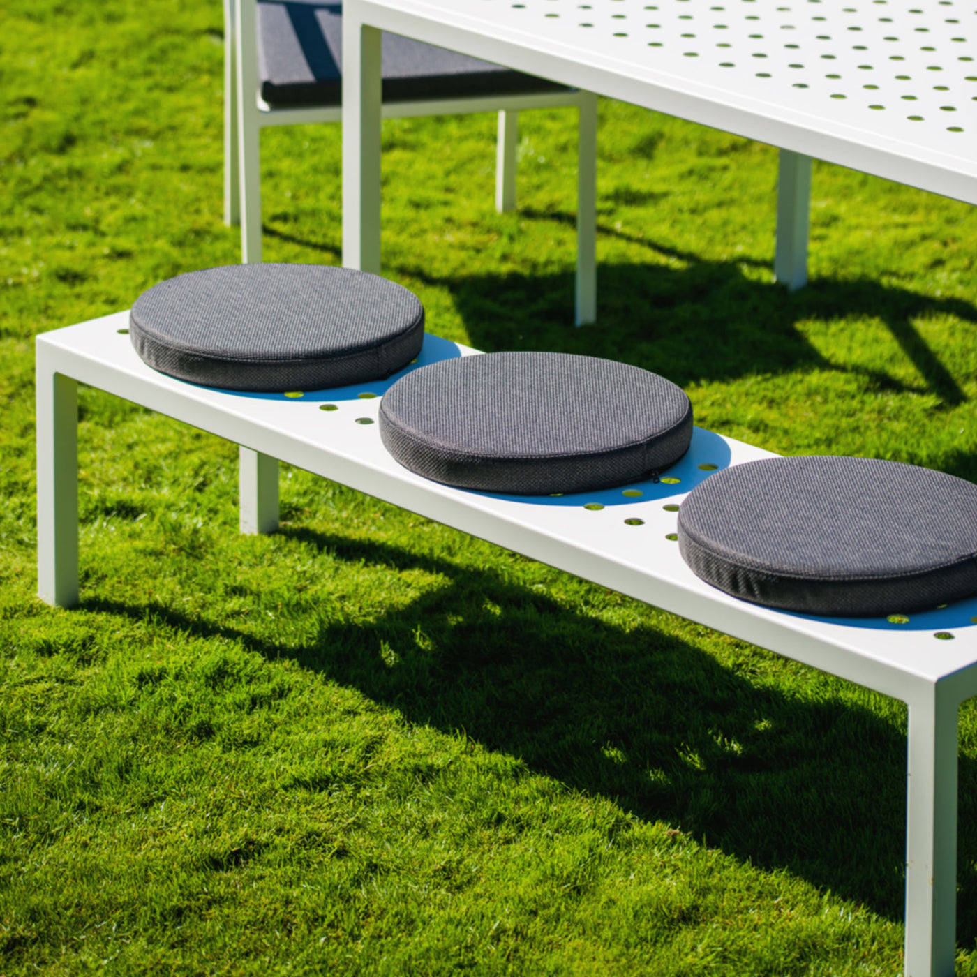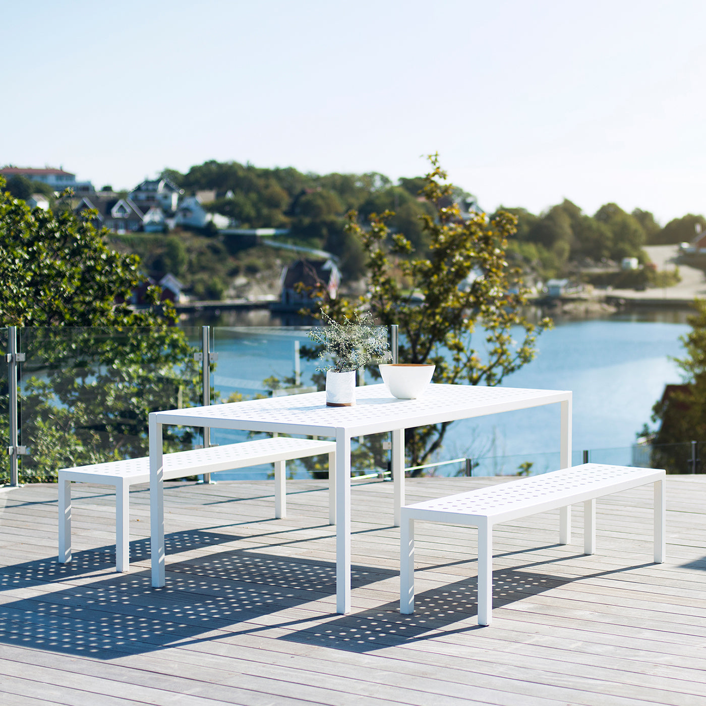 Enkle linjer designet i evigvarende materialer. Hver eneste strek er lagt med tanke på hvor vannet skal renne av. Med sitt minimalisiste utrykk, gjør designet seg godt i vågale farger og tekstilvalg. Møblene er laget i pulverlakkert aluminium og ruster ikke. Putene tåler selvfølgelig både regne og snø. Sundays design er hardhausen av designmøbler. Med Sundays kan du starte sommersesongen allerede i påsken, og la terrassen på hytta eller hjemme gi deg et hint av sommer midt i skisesongen. |