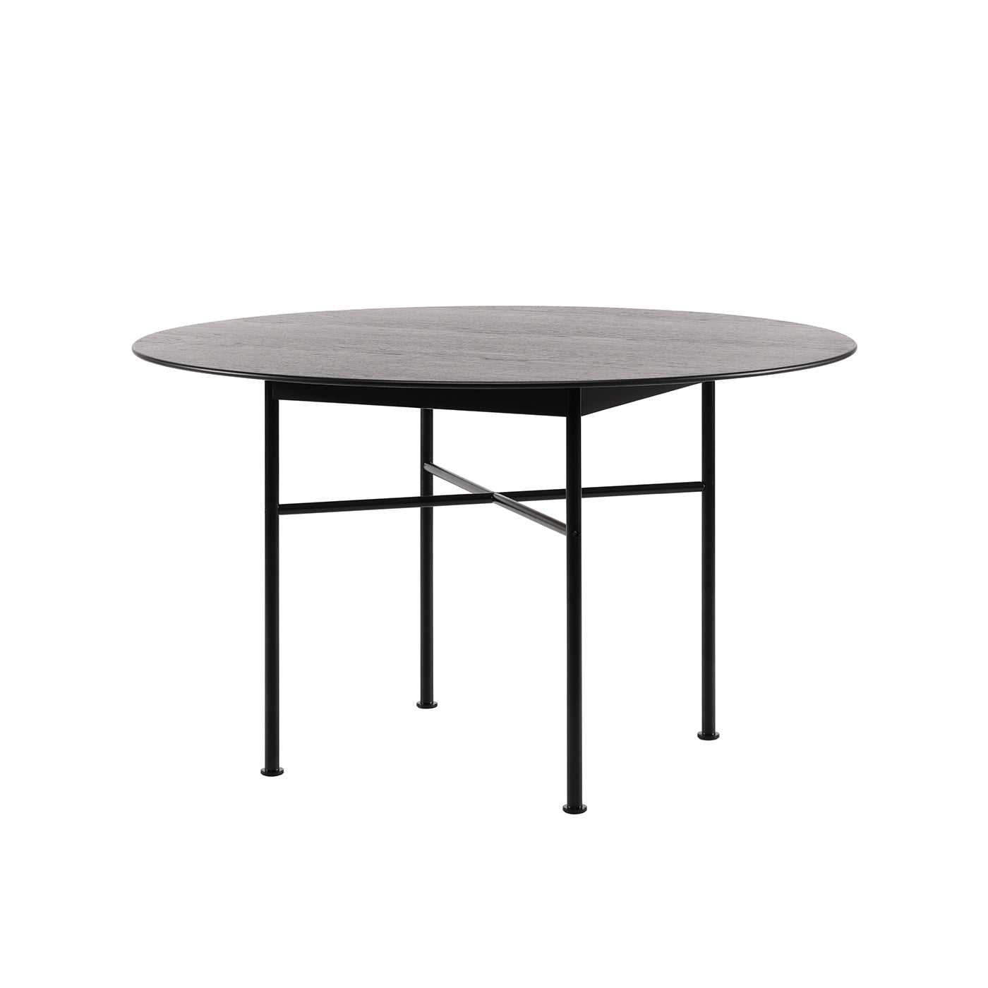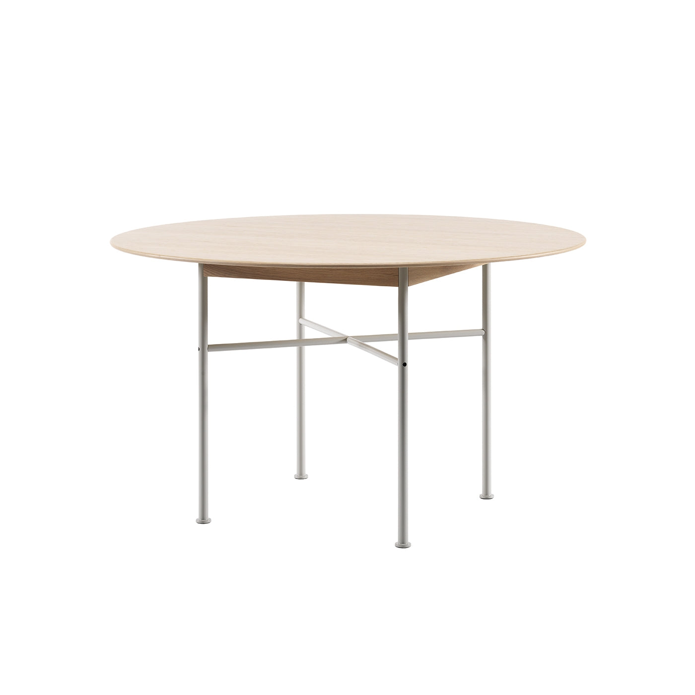 Ben: Metall Bordplaten: MDF og eikfiner Sarg: Massiv eik Høyde: 73 cm Diameter: 127 cm |