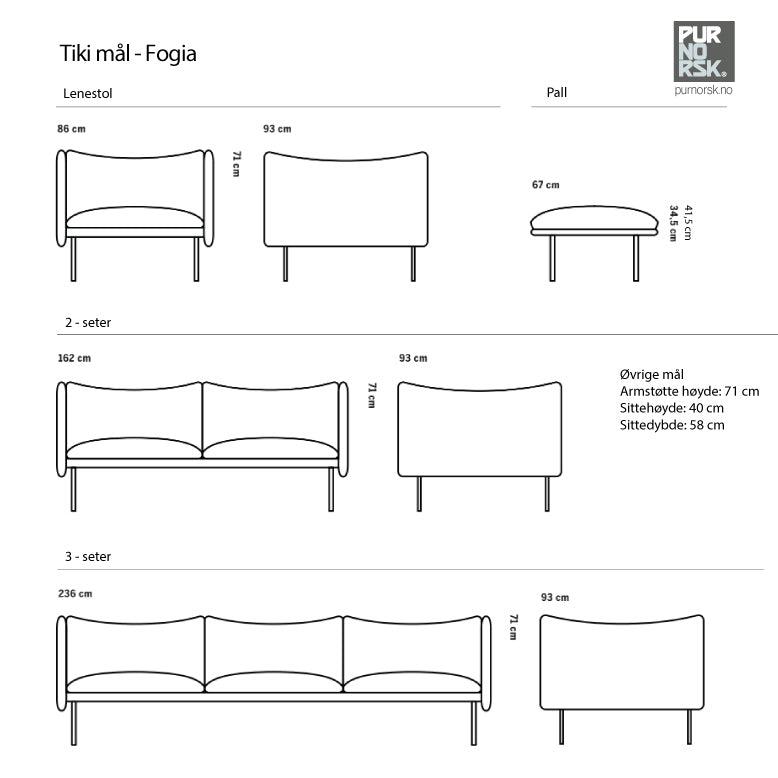 Produkter fra Fogia kan leveres med de fleste tekstiler. Ta kontakt med oss dersom du ønsker mer informasjon om valgmulighetene. Besøk oss gjerne i vår fysiske butikk på Majorstuen i Oslo for prøvesitting og introduksjon til tekstiler og skinnkvaliteter. | |||