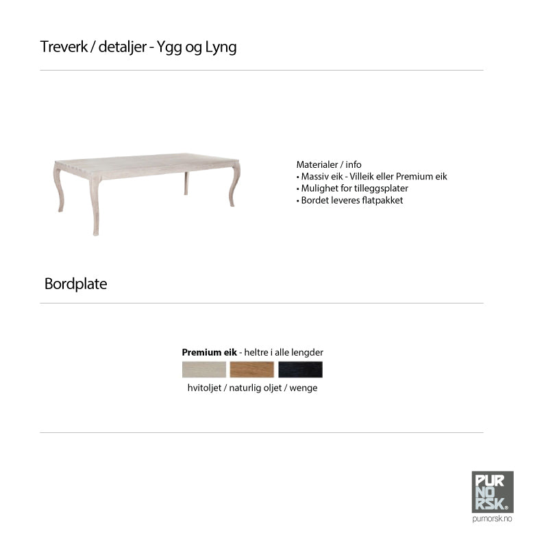 Victoria er ygg&lyngs første spisebord, og har blitt en kjær klassiker i kolleksjonen. Bordbenas innsvingte form har inspirasjon fra tidligere epoker, men er tidsriktig forenklet.Spisebordet er en del av V-serien i heltre eik, der en og samme bord-plate kan varieres med ulike ben. |