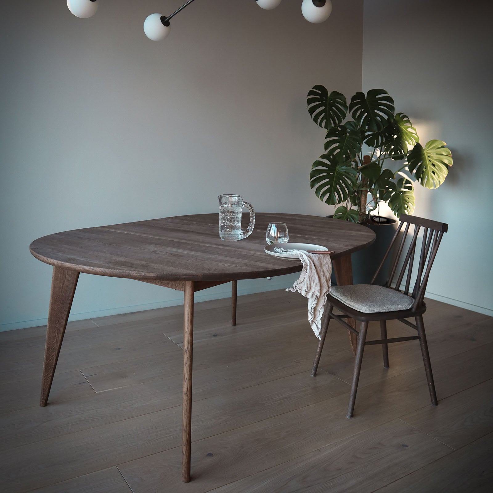 Viken har røtter i enkelhet og funksjonalitet fra skandinavisk modernisme. Med skråstilte ben og avrundet bordplate, oppleves bordet visuelt lett, nesten svevende. Vikenserien fås som runde og rektangulære bord i flere størrelser. De fleste av dem kan enkelt utvides for å gi plass til flere rundt bordet. |