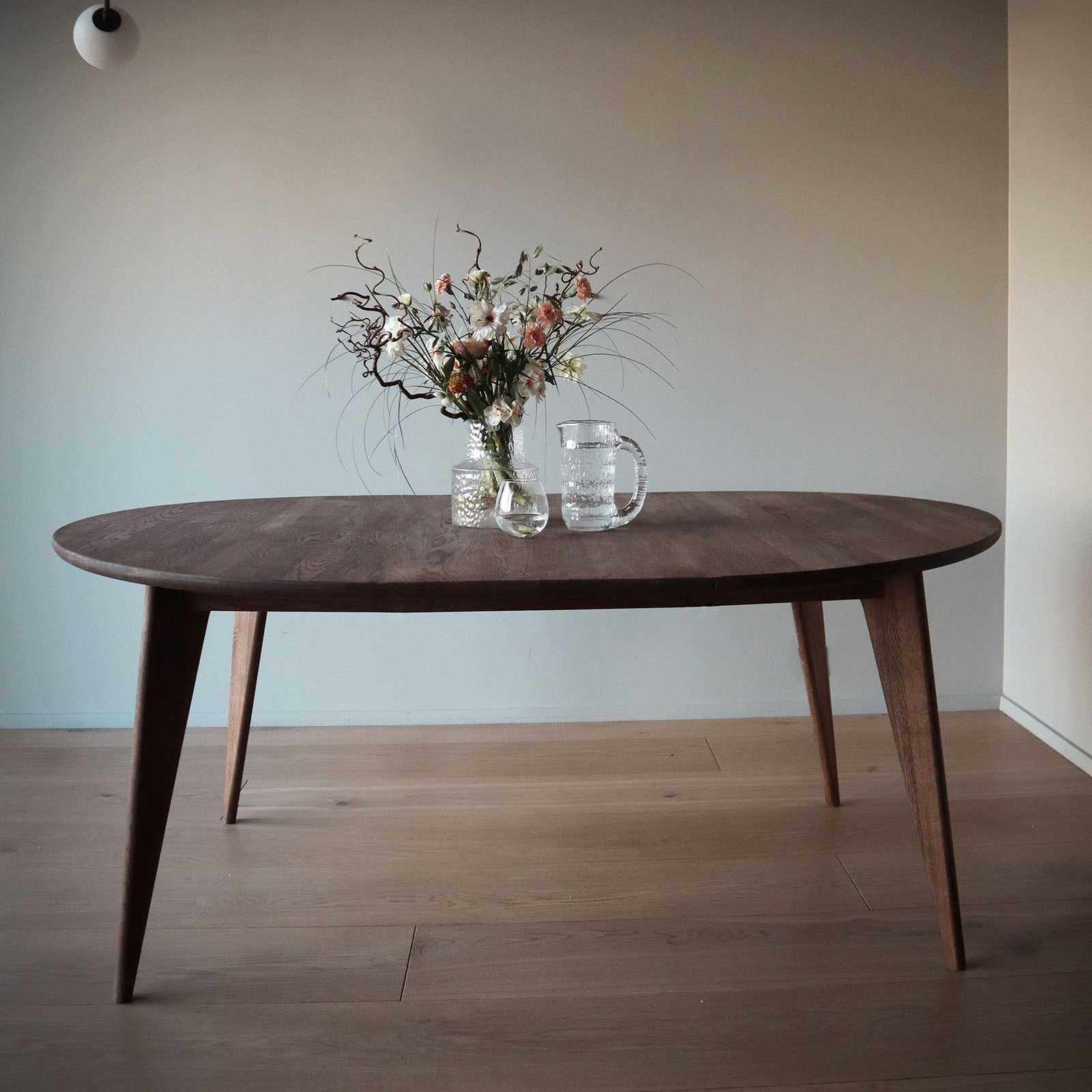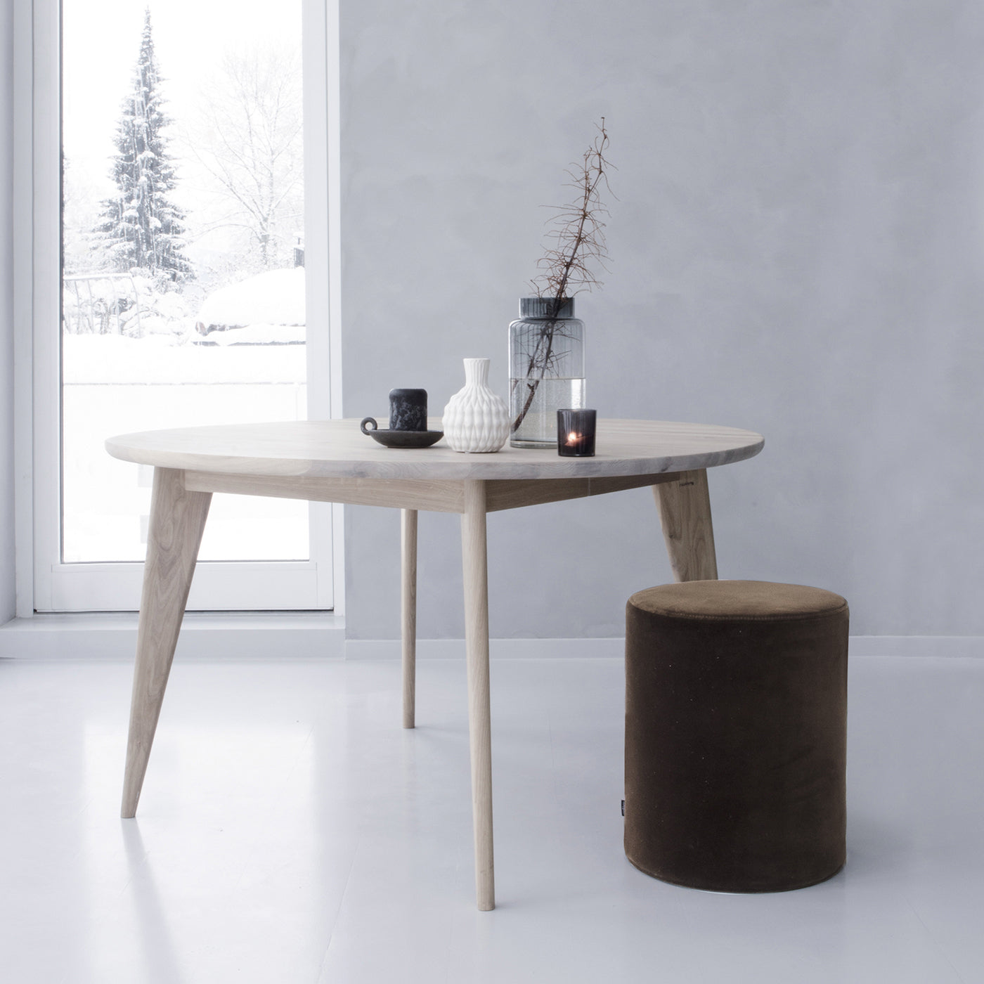 Viken har røtter i enkelhet og funksjonalitet fra skandinavisk modernisme. Med skråstilte ben og avrundet bordplate, oppleves bordet visuelt lett, nesten svevende. Vikenserien fås som runde og rektangulære bord i flere størrelser. De fleste av dem kan enkelt utvides for å gi plass til flere rundt bordet. |
